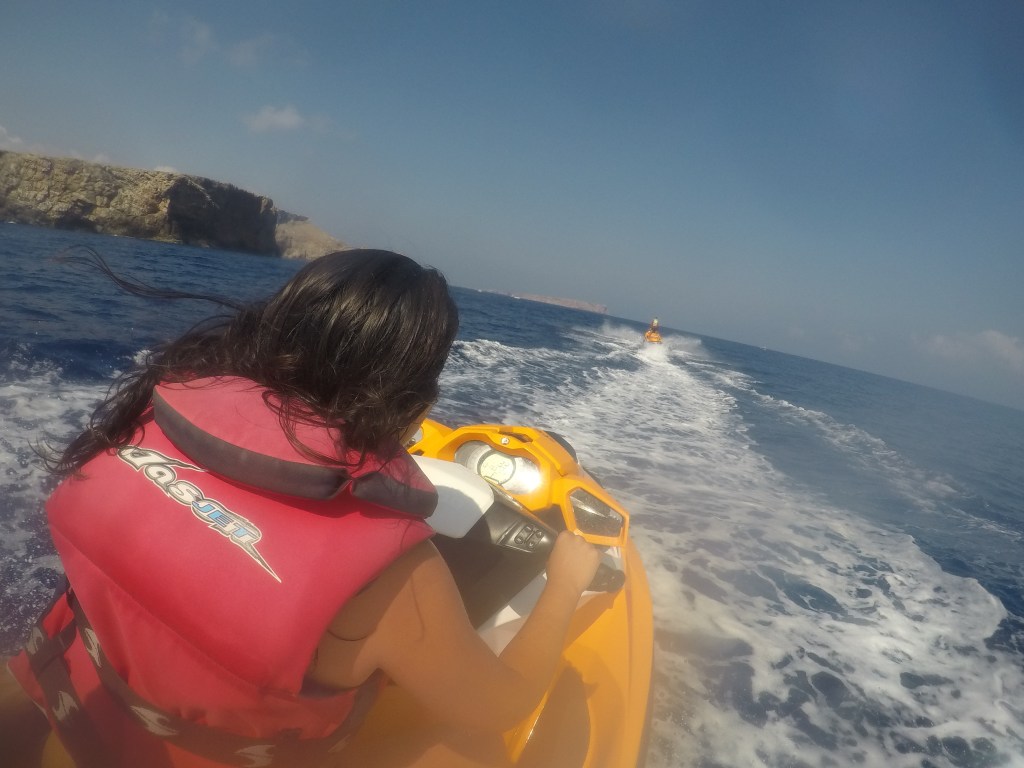 Alquilamos unas motos de agua con la única empresa que hay en Fornells.