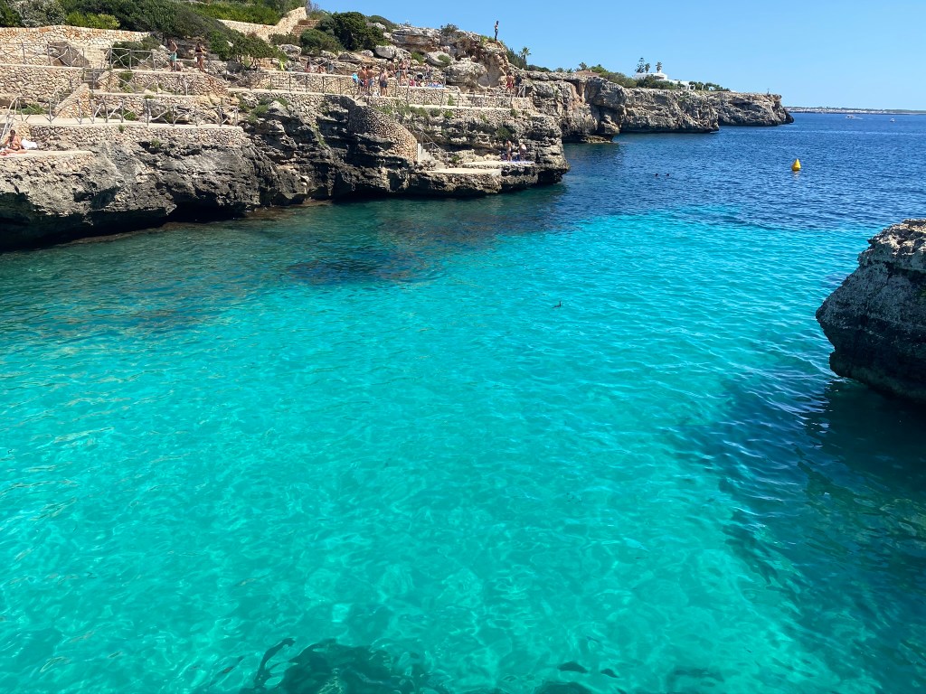 Cala Pudent: si lo que se busca es una cala sin gente, os la recomiendo. Se tardan unos 25 minutos andando desde la playa Arenal de Son Saura (una playa grande de arena). El camino tiene buenas vistas, pero no tiene nada de sombra.
