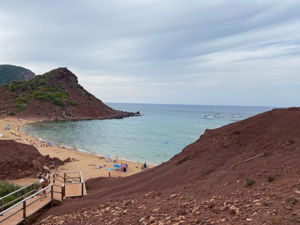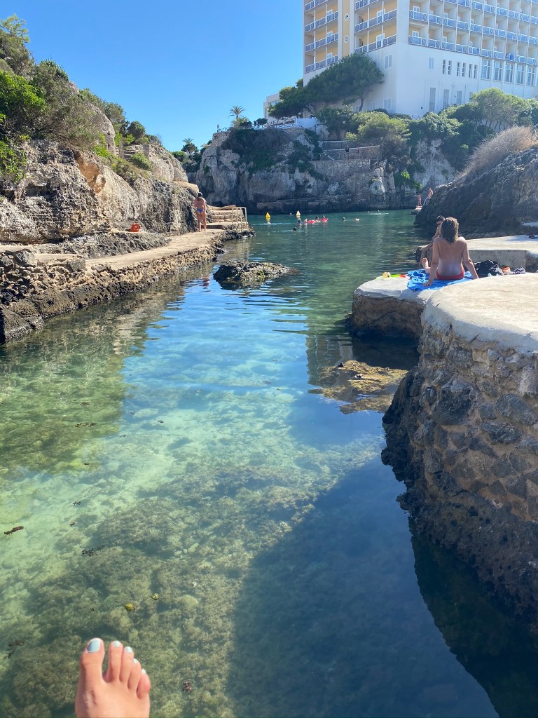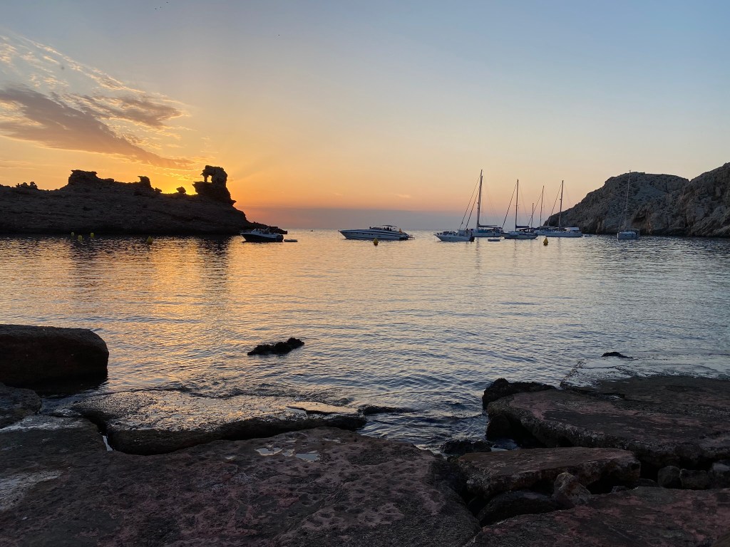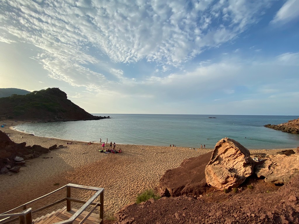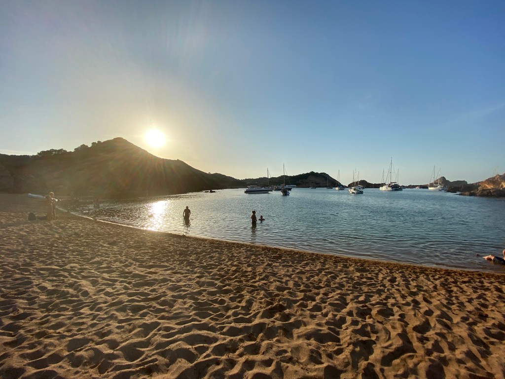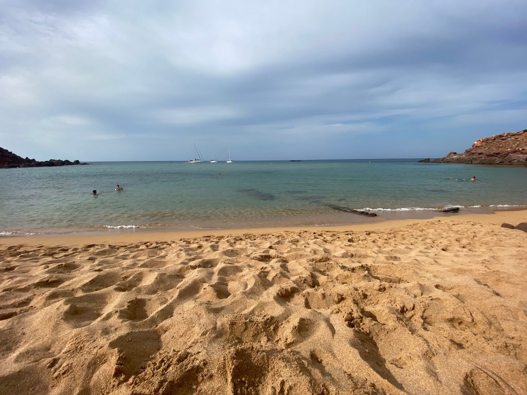 Cala Pregonda: es una cala muy bonita, con la tierra rojiza y una islita en el medio para hacer snorkel. Desde el parking se tardan unos 20 minutos andando, es bastante grande. Si no se quiere andar tanto, se pasa por la playa Binimela, que también es muy bonita. Para llegar hasta el parking, Google Maps nos indicó mal (poned: «Aparcamiento Binimela»), llegó un punto que estaba prohibido seguir, os recomiendo que a partir de ahí sigáis las indicaciones. Desde el prohibido, hay que ir hacia la derecha.