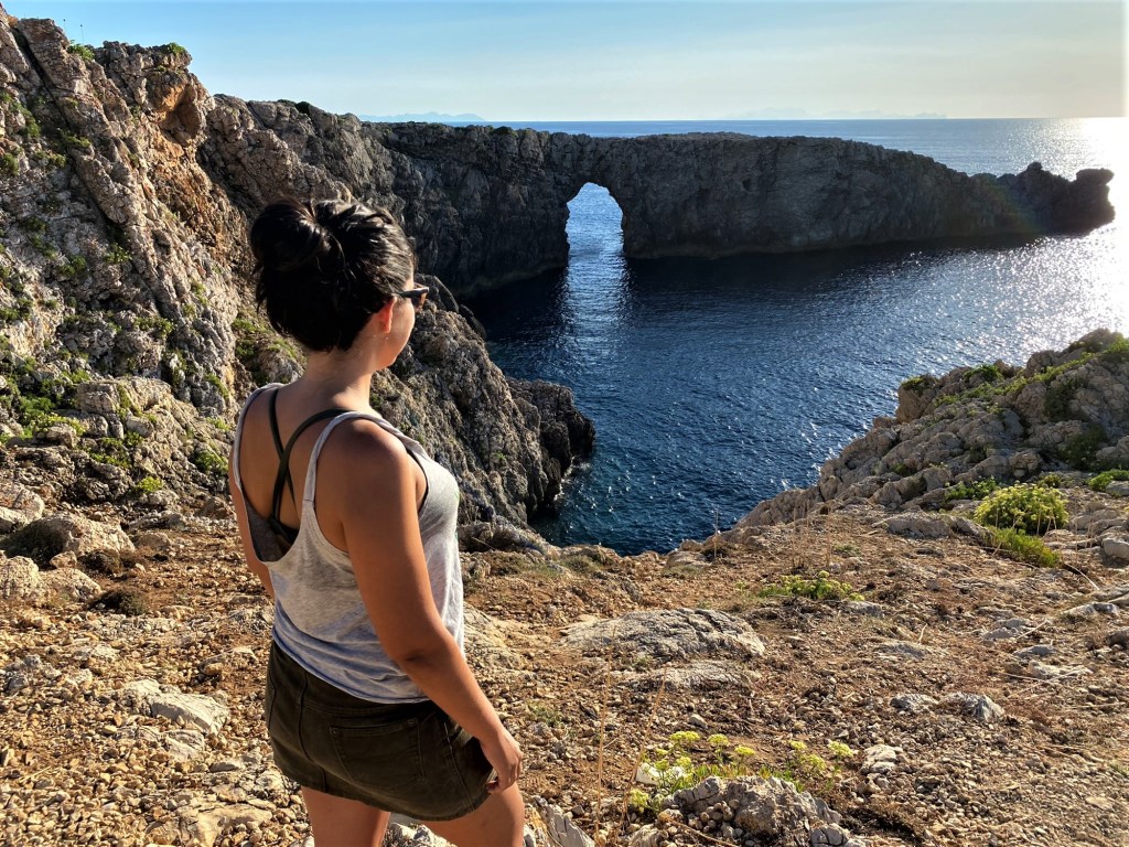 Pont d’en Gil: se encuentra a 20 minutos andando desde la cala en Forcat o a tres minutos en coche. El atardecer es increíble. Recomiendo llevar unos zapatos cómodos, porque el camino tiene piedras picudas. Desde que se aparca al arco de la foto, se tardan unos cinco-diez minutos andando.