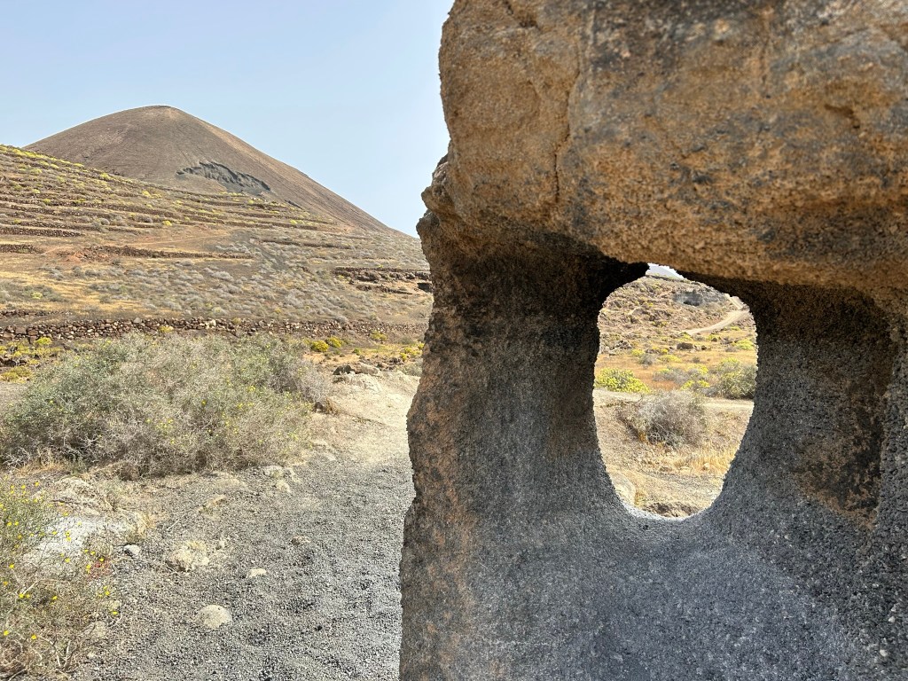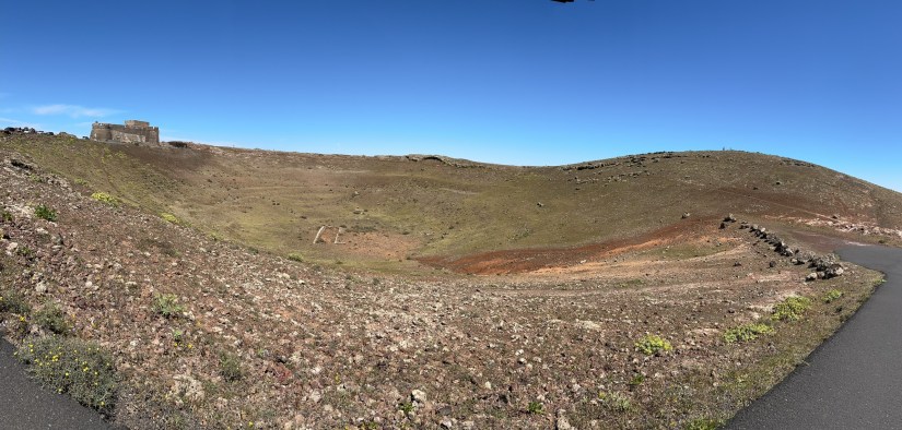 VOLCÁN LOS CUERVOS. Hicimos una pequeña excursión muy sencilla. Se aparca al lado de la carretera. Llega un punto que hay dos opciones, o ir por la izquierda, primero se rodea el volcán por fuera y luego se entra dentro, o si se va por el camino de la derecha, se llega antes al centro del volcán. Está bastante concurrido. La ruta entera son unos cuatro kilómetros y medio.
