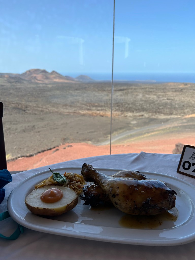 ➽ Nosotros hicimos la turistada de comer pollo al volcán. Estaba rico, pero había muchas especias que no te dejaban degustar bien el sabor del volcán. Pero, ¿cuántas veces vas a poder comer pollo hecho en un volcán?. El precio por dos muslos de pollo fue de 16 €.