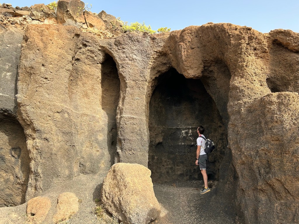 ANTIGUA ROFERA. Una rofera es de donde se saca el rofe de los conos volcánicos. El paisaje que deja es diferente al resto. Se puede aparcar y ver algo al lado, o hacer una ruta rodeando la montaña de Guenia, que fue lo que hicimos nosotros. Tardamos alrededor de dos horas en hacer la ruta.