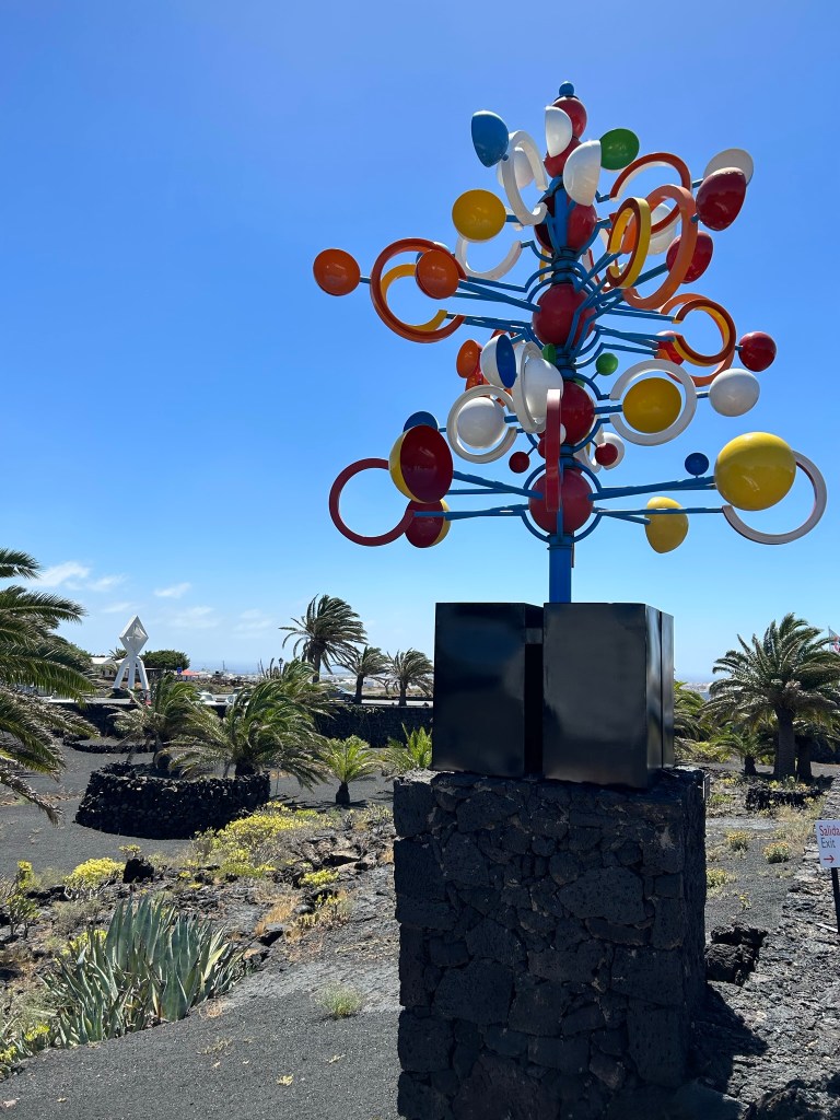 FUNDACIÓN CÉSAR MANRIQUE. Hay varios museos de César Manrique, esta es una casa que él hizo, pero nunca vivió en ella. Está en medio de la naturaleza y hay paredes que son piedras volcánicas que no modificó. Me parece cara la entrada (10 € por adulto) para lo que es. Nos sirvió para conocerle un poco más. Horario: 10:00 – 18:00.