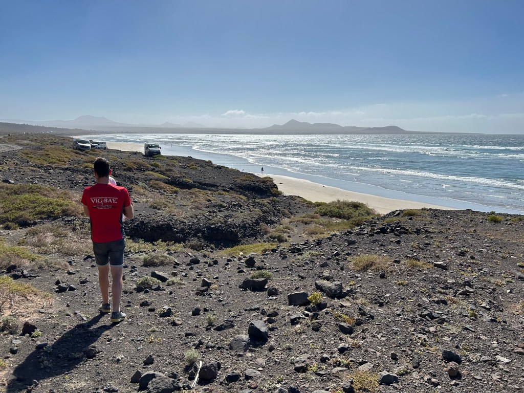 PLAYA DE FAMARA. Ideal para hacer kitesurf, surf,… Pensaba que desde el mirador a la playa había una carretera, pero no. Para llegar a donde está hecha la foto hay que ir por un camino de tierra.