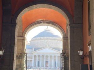 Plaza del Plebiscito. Nos sorprendió lo ancha que es. Aquí se encuentra la basílica de San Francisco de Paula de estilo neoclásico donde destaca la cúpula y sus 34 columnas corintias. También se puede ver el Palacio Real y el Teatro de San Carlos. De aquí sale la Via Toledo, la cual comunica con el centro.