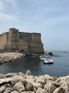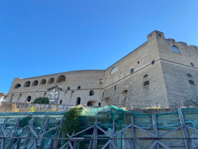 Castel dell’ Ovo. Su ubicación en un islote es perfecta. Ha sido cárcel y residencia real. A fecha de enero 2026 se está restaurando y no se puede acceder.