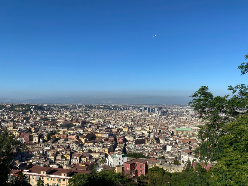 Al volver de Pompeya en coche paramos en el Castel Sant Elmo situado a las afueras. Cuando llegamos ya estaba cerrado, nos centramos en las buenas vistas de todo Nápoles, Capri, el Vesubio, …