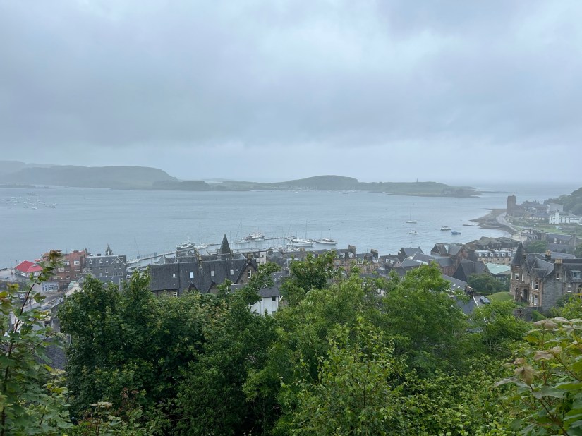 Nos alojamos aquí tres noches, con lo que cada día fuimos a visitar diferentes lugares. Es el típico pueblo que cambia mucho si hace bueno o si llueve. El día que llegamos había un montón de ambiente, muchas tiendas abiertas, la gente en las terrazas, … El segundo día que llovía no se veía a nadie, parecía un pueblo fantasma. Lo más bonito de Oban es su bahía, pasear al lado del mar y disfrutar de la bonita estampa que dejan los barcos en el mar. La calle principal está llena de tiendas y restaurantes, hay bastante variedad gastronómica. Lo malo es que es un poco caos conducir por Oban y hay que pagar parking en todo el pueblo.