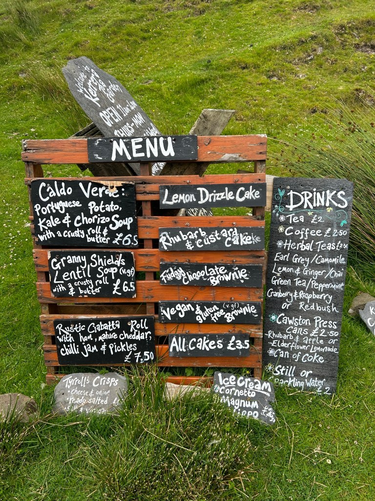 Todo el camino se van viendo teteras con carteles que te animan para decirte que ya se está llegando al “Tea Garden”. Pensábamos parar a comer algo pero era muy pronto y hacía muy malo como para jugárnosla a perder el barco. Tienen una carpa para poder tomarte algo en un sitio resguardado. La carta no es muy extensa, os la he dejado anteriormente.