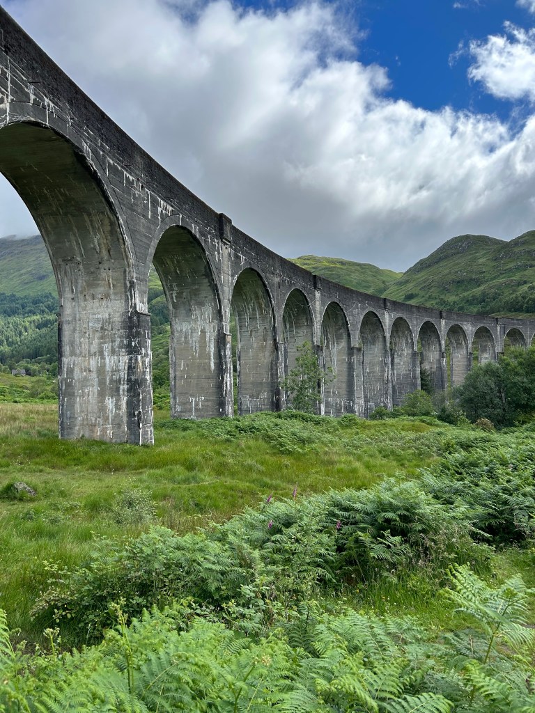 ➡️ Aunque lo más destacado es ver y escuchar el tren de vapor, no hay que dejar de lado por donde pasa, el viaducto de Glenfinnan. Tiene 21 arcos y se construyó en 1898. Actualmente pasan por allí todos los trenes de la West Highland Line.