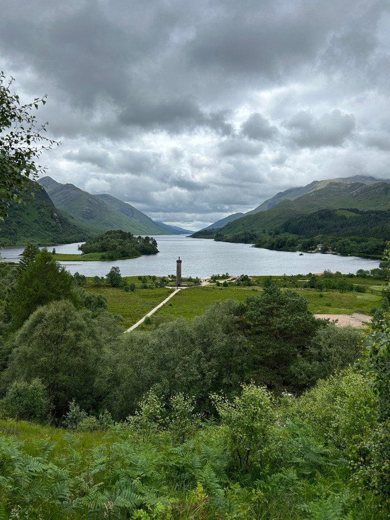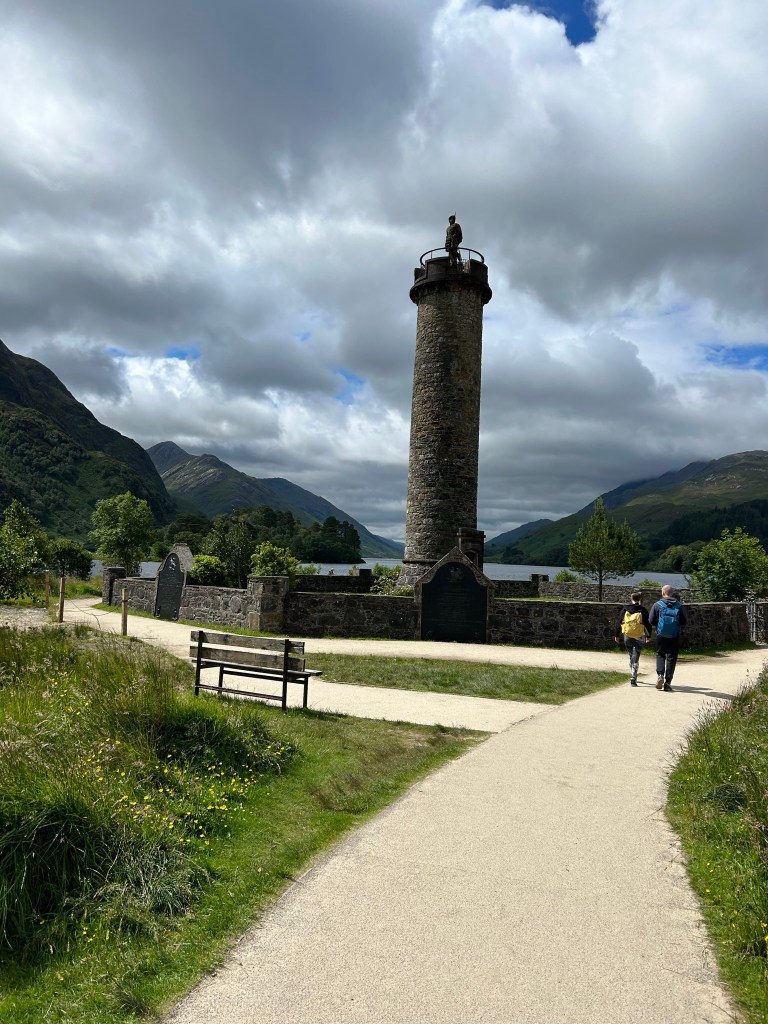 ➡️ El monumento de Glenfinnan está dedicado a los que lucharon en el levantamiento jacobita de 1745. Es una torre de unos 18 metros de altura. Se encuentra al otro lado de la carretera. Desde allí se pueden hacer fotos de postal con el lago Shiel de fondo, ¿sabíais que este lago también sale en las películas de Harry Potter? Es el lago de Hogwarts. Se puede subir a la torre, sólo 6 visitantes por turno. Cuando fuimos nosotros estaba cerrada. El precio es de 5 libras y hay que reservarlo con tiempo de forma online.