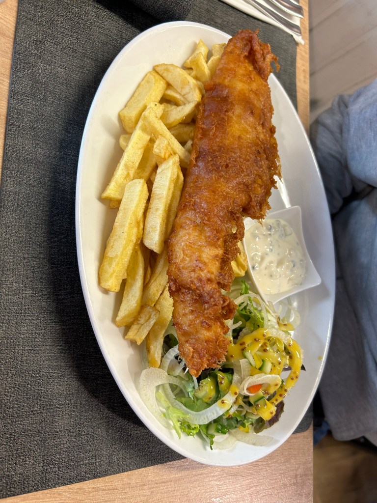 ➽ “The Cabin” (actualmente se llama The Crab & Creel, no sé si habrá cambiado el dueño). Es un restaurante pequeño ideal para comer pescado y marisco. Nosotros llegamos pronto, a las 19:00 y conseguimos sitio, pero cogimos el último. También tiene para llevar a casa. Estaba todo muy rico, eso sí, lo pagamos. Nuestra cuenta fue de 59,95 libras y pedimos: un plato de mejillones, pollo empanado para niños con patatas, un plato de carne con patatas, una bebida y un postre.
