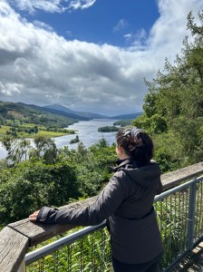 QUEEN ‘S VIEW. Hicimos una parada en Queen ‘s View para contemplar las vistas, sobre todo del lago Tummel. El paisaje realmente merece la pena y es uno de esos lugares donde apetece quedarse un rato simplemente disfrutando del entorno. El aparcamiento es pequeño y de pago: cuesta 2 libras por coche para todo el día. Hay que andar muy poco hasta llegar al mirador. El origen del nombre de este mirador no está del todo claro. Dicen que se hizo famoso por que fue visitado por la reina Victoria en 1866 y le gustó, pero probablemente se le puso el nombre con anterioridad en honor a la reina Isabel, mujer de Robert the Bruce.