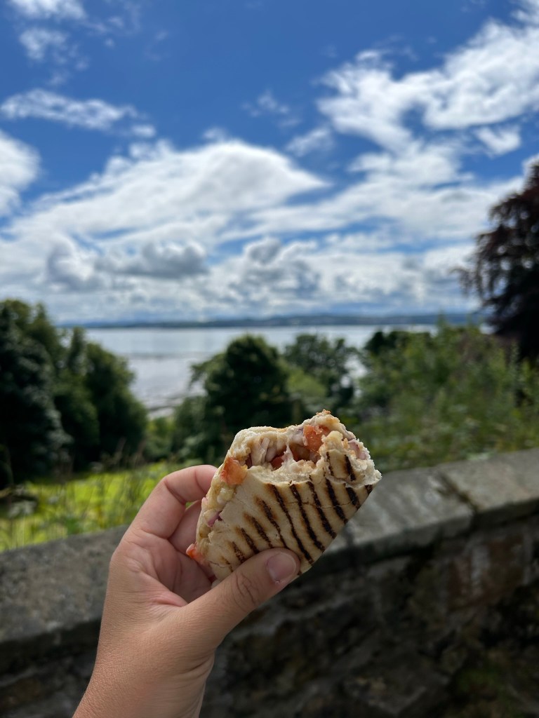 ➽ “The Orangery”. Comimos algo rápido en la cafetería del castillo Dunimarle con vistas a la bahía. La cafetería por dentro también está cuidada al detalle. Lo único que no tiene mucha variedad.