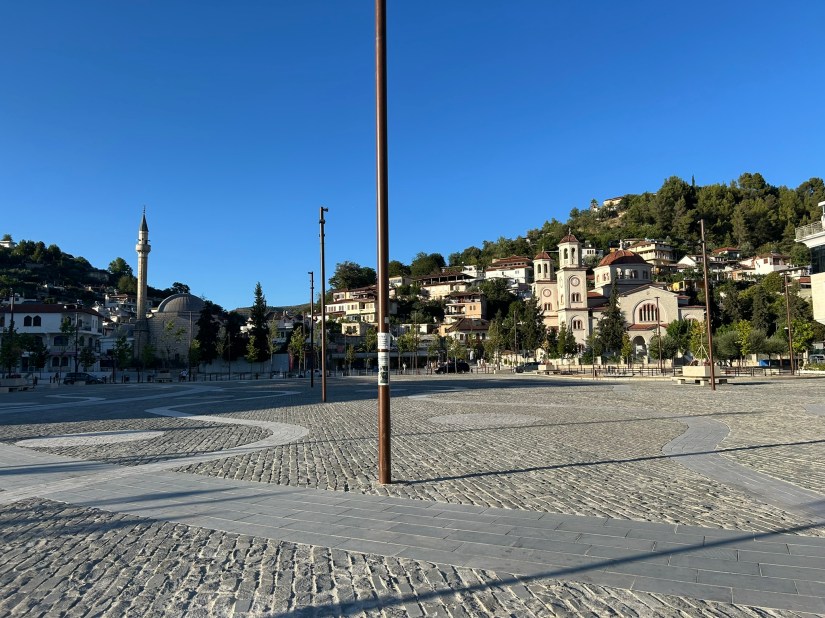 Es el principal templo cristiano de Berat y destaca por sus campanarios y gran cúpula. La entrada es gratuita, aunque tampoco merece la pena entrar. En la plaza de la catedral hay unas fuentes que salen del suelo, ideal para los más peques si se va en verano. Para llegar hasta aquí se puede ir por el Bulevar Republika, que hablo en otro punto, o por la calle Antipatrea, que cuando fuimos nosotros estaba en obras, y muy bonita no estaba.
