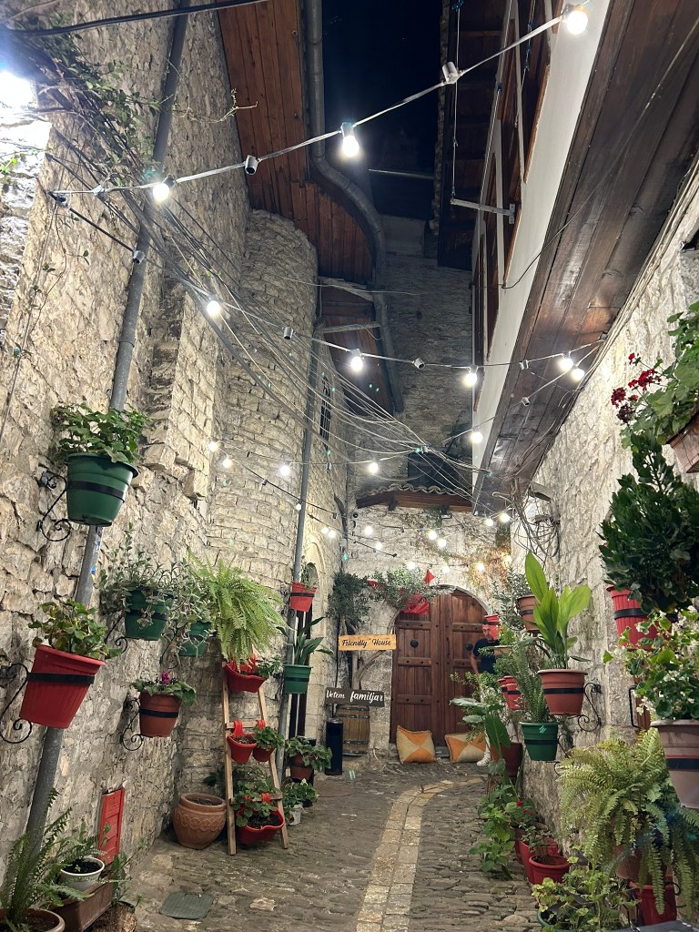 ➽ “Butjina Bega”. También está en el top 3 de los restaurantes de Albania que probamos. La terraza es muy cuqui con vistas y muy simpáticos. También es alojamiento. Ubicado en la zona del castillo.